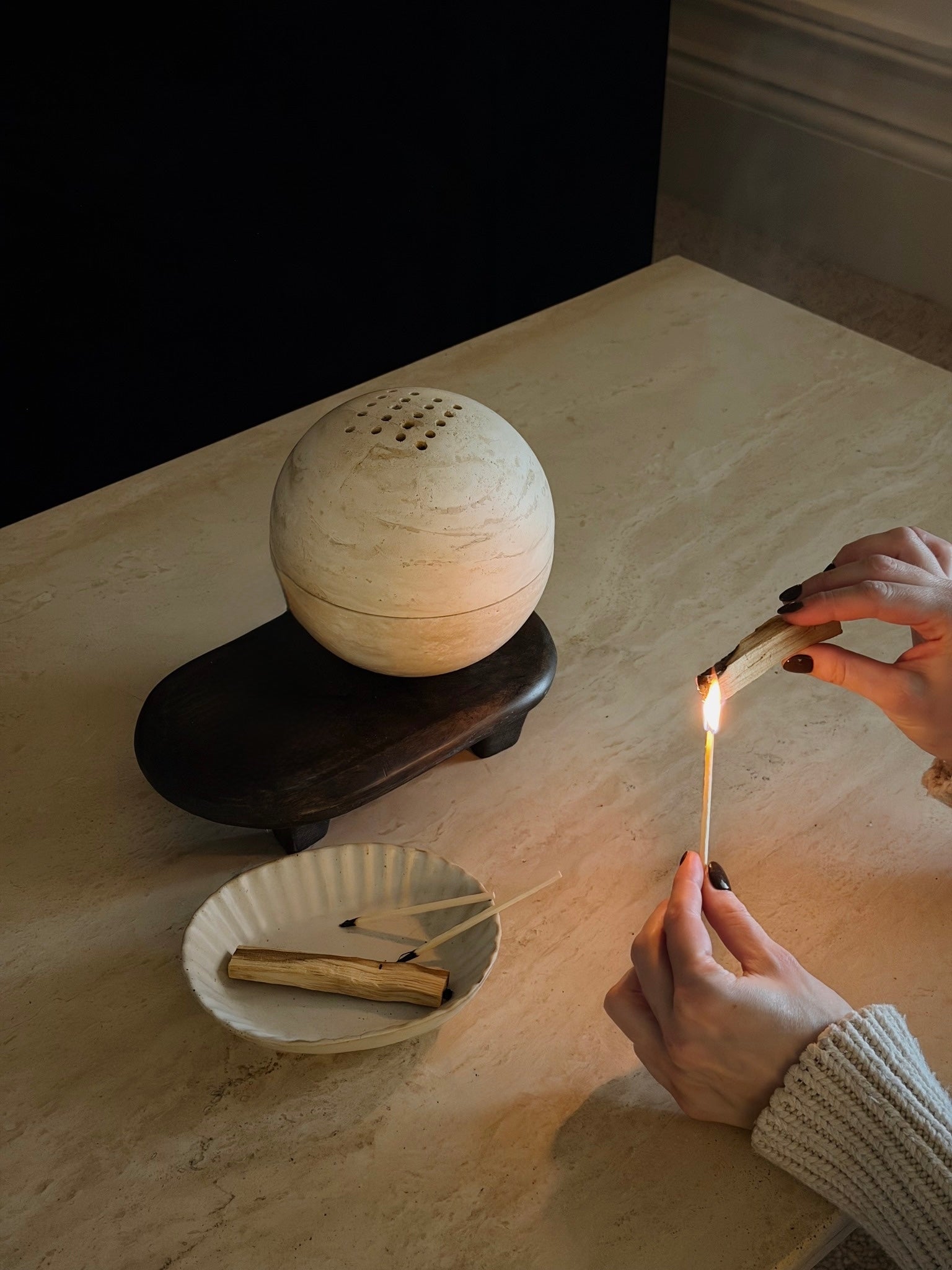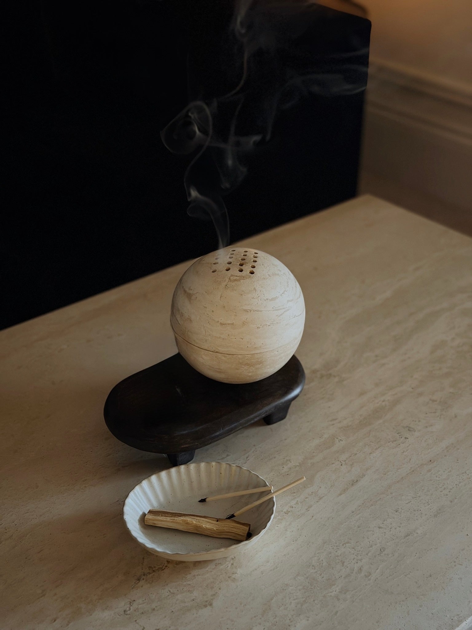 Nutze GLOBE mit Palo Santo, Räucherstäbchen, Kräuterbündeln oder Kohle und Harze, um deine Räume in Ruhe zu hüllen – ganz ohne großen Aufwand, ganz ohne Esoterik.
