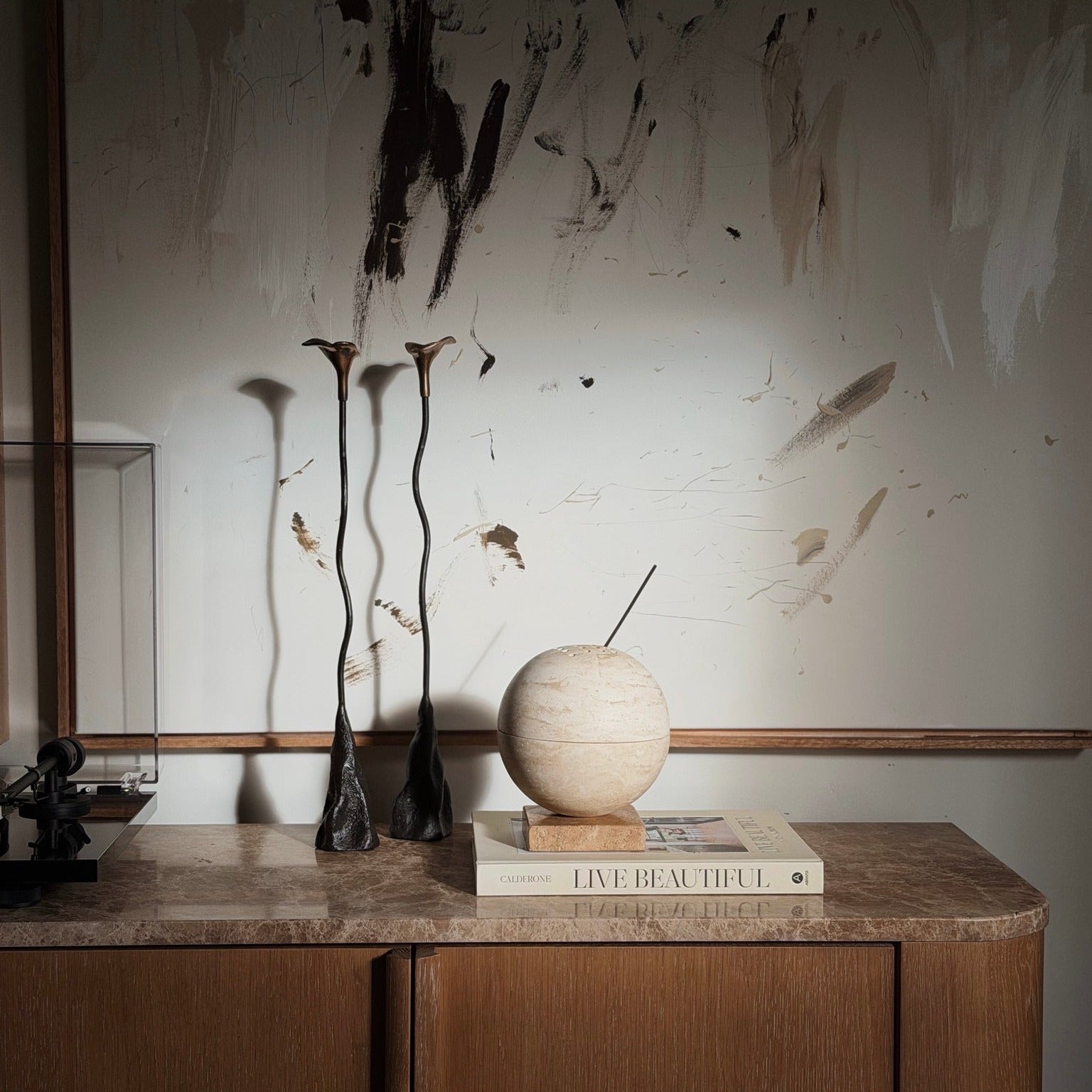 Die GLOBE besteht aus unbehandeltem Travertin – einem offenporigen Naturstein mit Charakter.